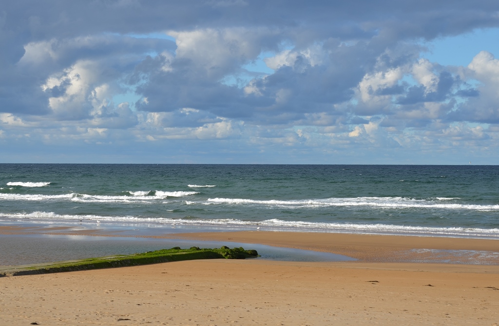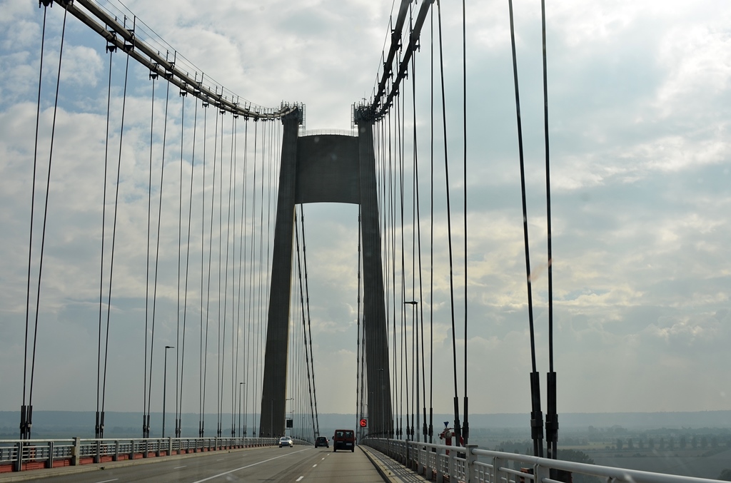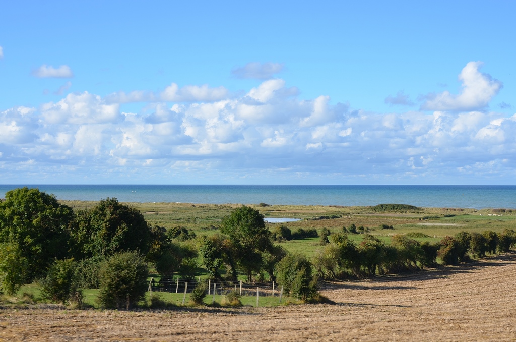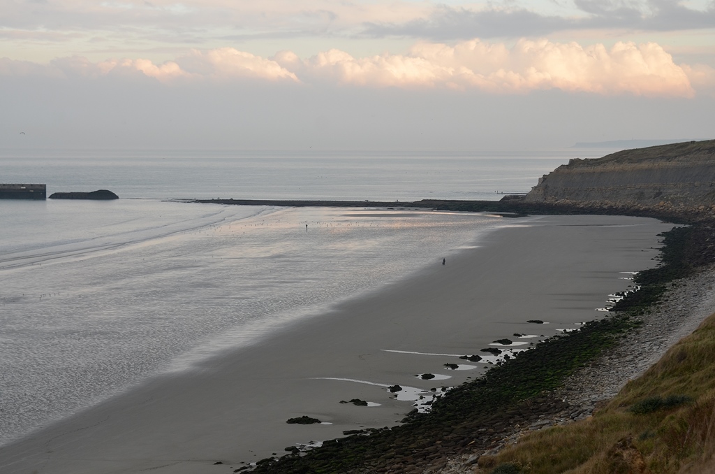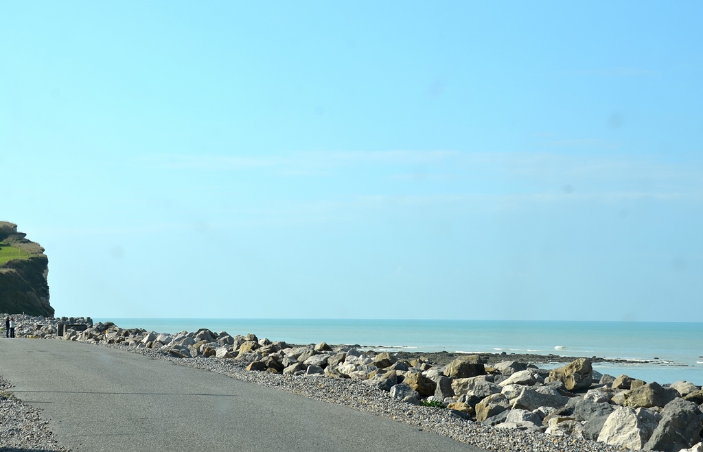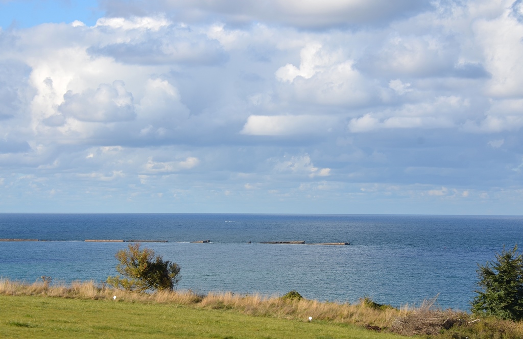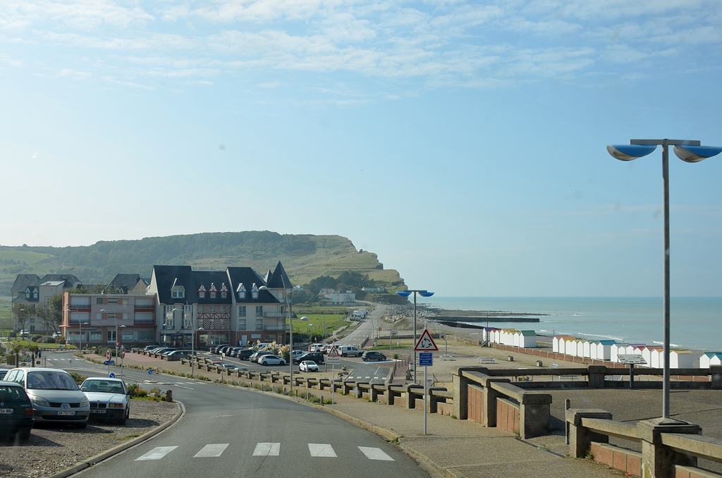 Nach dem wir etwas Kleines in den Magen bekommen haben, wollen wir eigentlich der Küstenstrasse der Normandie folgen. Allerdings gibt es dann einen kleinen Umweg über die Brücke „Pont de Tancarville“, um dann über Cabourg nach Riva-Bella zu gelangen. Von hier aus gibt es wirklich nur noch wunderschöne Küstenstrassen mit Blick auf Traumstrände und ein kleines Küstendorf folgt dem nächsten. Es ist natürlich auch nicht zu übersehen, welch geschichtsträchtige Region wir hier besuchen. Überall ist der 2. Weltkrieg und die Landung der Alliierten in der Normandie erkennbar. Wir zwei können allerdings nicht wirklich verstehen, warum man mit Souvenirshops das Andenken der Helden von damals beschmutzt und alles zu Geld machen muss.