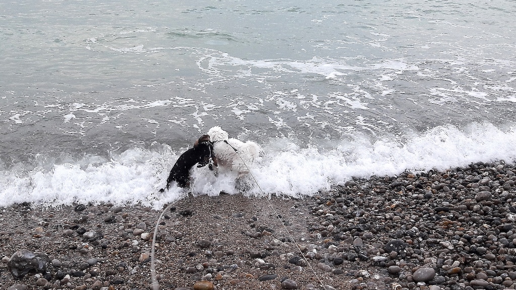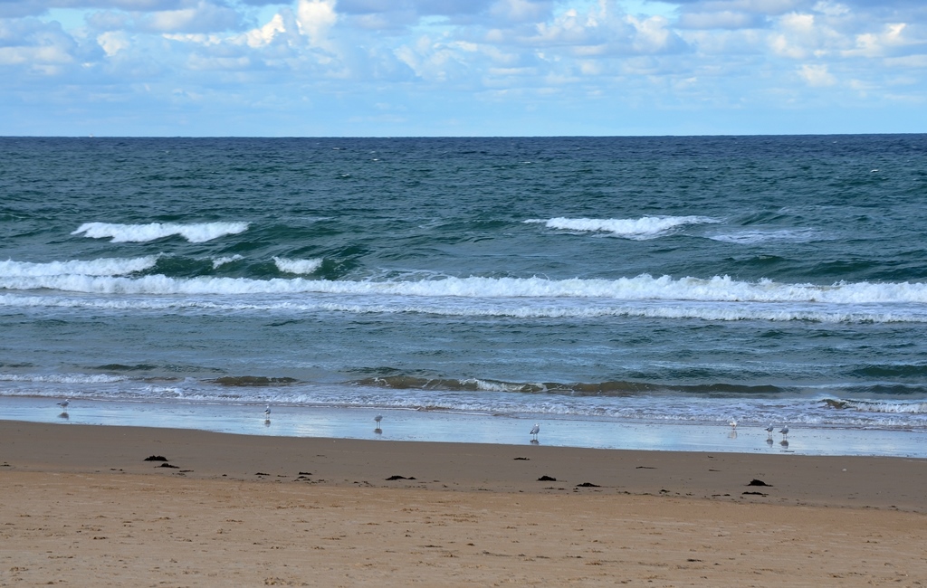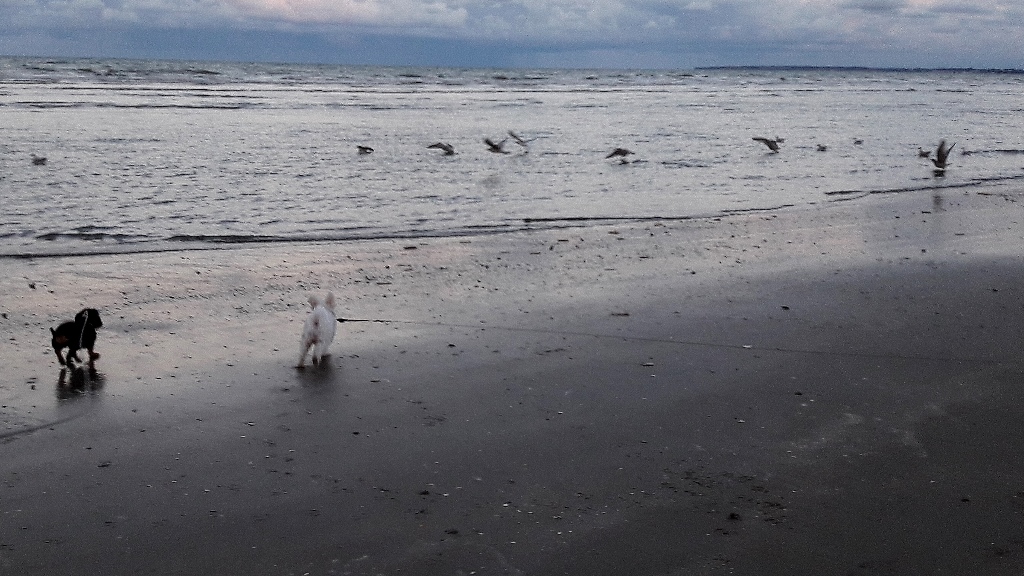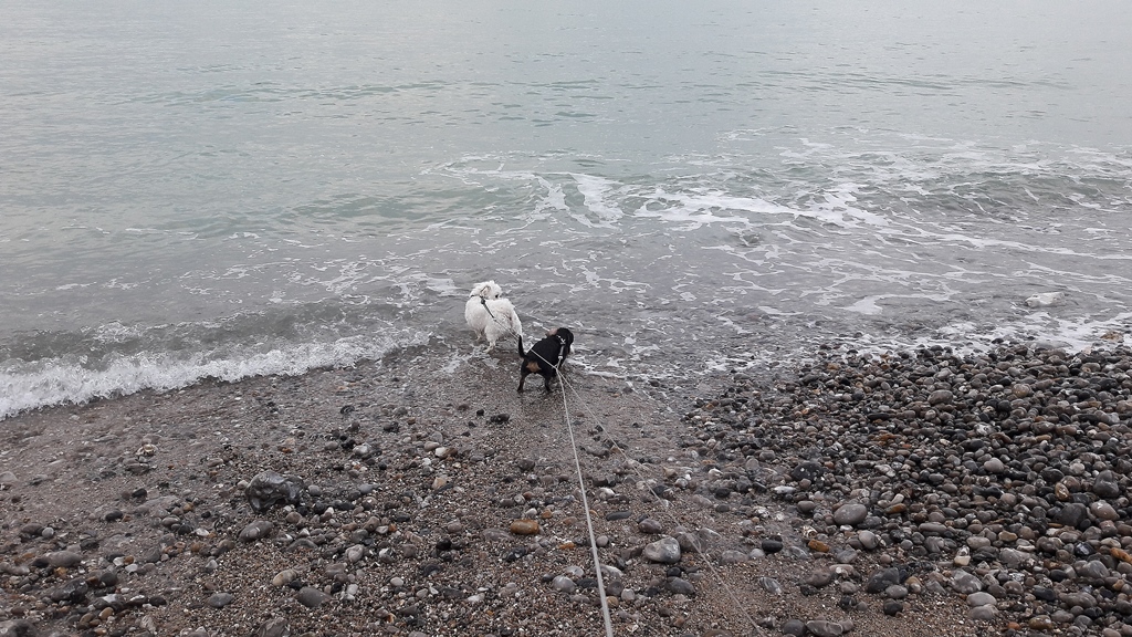 traumhaften Ausblick über die Bucht, jedoch wissen wir auch sofort, dass er nicht einer unserer Lieblingsplätze werden wird. Zum Schlafen genügt er auf alle Fälle. Zumal der Stellplatz uns eine optimale Ausgangslage für die Küstenreise bietet. Bei einem Abendspaziergang entlang der Küstenstrasse, lassen wir den Tag ausklingen. Leider sind unsere Hunde am Strand unerwünscht und ganz schweizerisch halten wir uns natürlich an dieses Verbot. Wilson und Olly werden noch genug Möglichkeiten bekommen, im Sand zu buddeln.