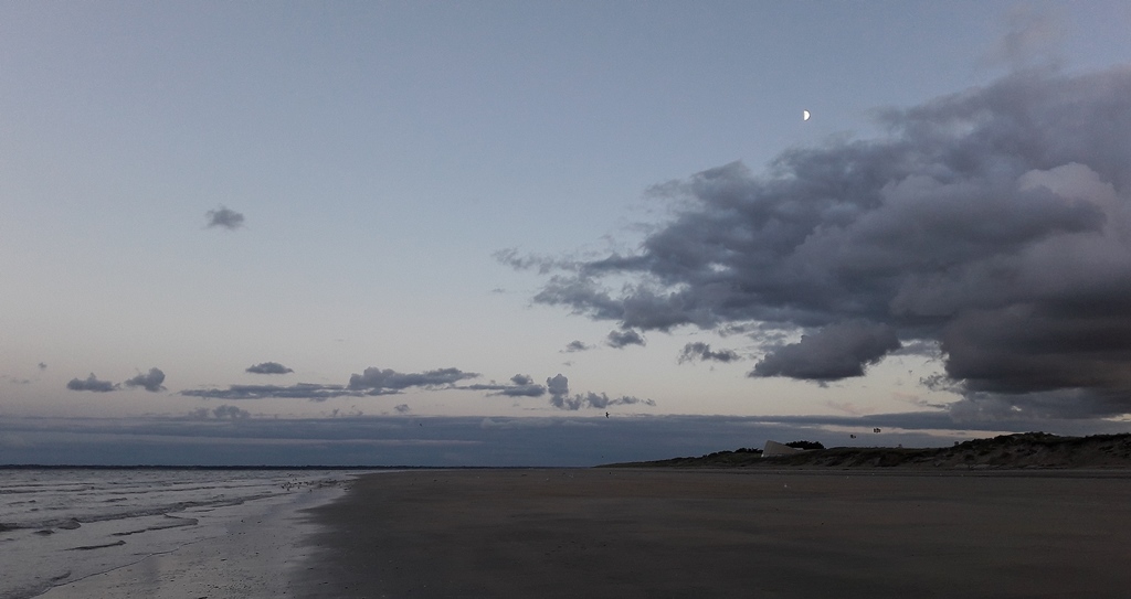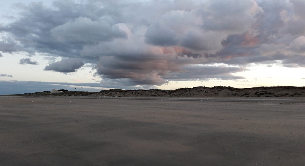 Der Stellplatz in Utah Beach ist perfekt! Als wir ankommen, sind wir das einzige WoMo auf dem Platz. Die einzigen Nachbarn sind vier Lamas, ein paar Pferde auf der anderen Strassenseite und ein Hase. Der angrenzende Campingplatz hat anscheinend bereits Saisonende. Uns gefällt es hier richtig gut. Auch der Spaziergang zum Strand erweist sich schon jetzt als ein Höhepunkt unserer Reise. Wir haben einen riesigen Sandstrand für uns ganz alleine. Ein paar Möwen tummeln sich und unsere Jungs haben wahnsinnig viel Spass. Sie rennen und buddeln und geniessen das Leben in vollen Zügen. Die Abendstimmung ist traumhaft. Hier könnte man es echt länger aushalten. Zurück im Jelly, wird fein gekocht und wir vier Schweizer geniessen den Abend unter uns.