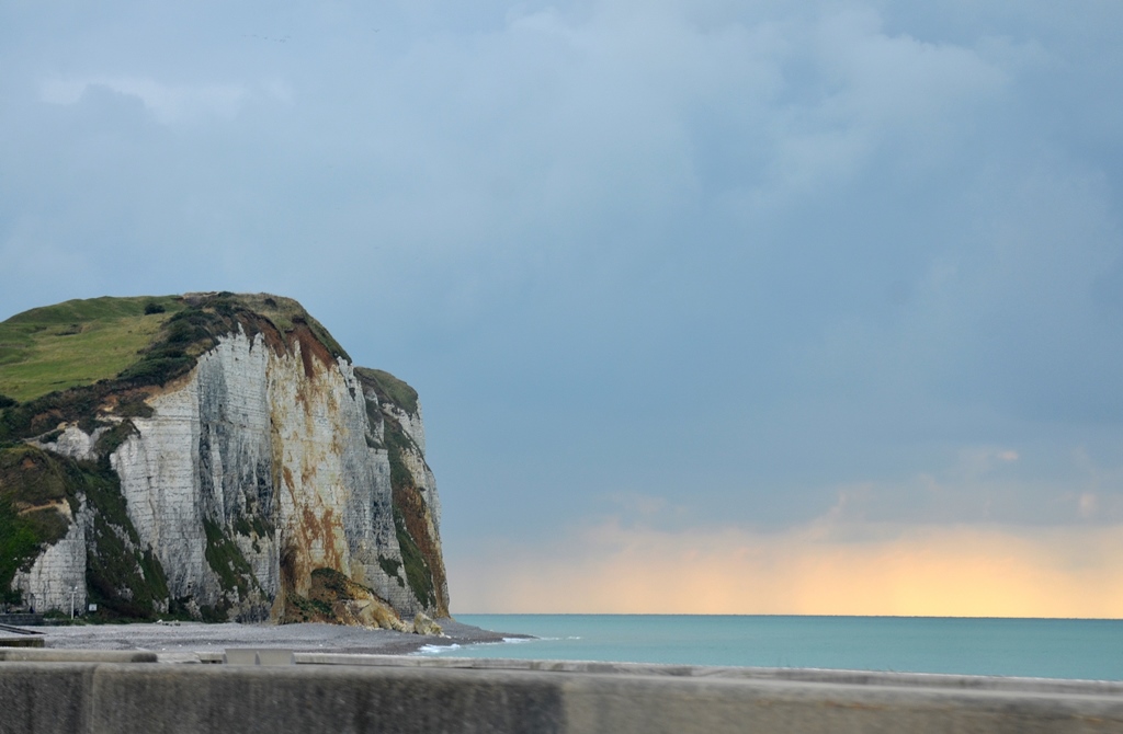 Wir fahren weiter, durch Dieppe und dann Richtung Fécamp. Wir haben als Zwischenziel einen Stellplatz in Veulettes-sur-Mer im Navi eingegeben. Bei unserer Ankunft in diesem Ort, finden wir erneut ein atemberaubendes Panorama, diesmal mit zwei weissen Steilküsten vor. Die Beleuchtung von dunklen Wolken, milchig-blauem Meer und der Sonne, taucht die ganze Region in eine malerische Kulisse. Ein paar Meter vom Strand entfernt, richten wir uns diesmal auf einem kleinen Campingplatz häuslich ein. Die Jungs dürfen nochmals ausgiebig im Meer planschen und anschliessend gibt’s für uns leckeren Fisch. Ein perfekter Meer-Tag, was will man mehr?!