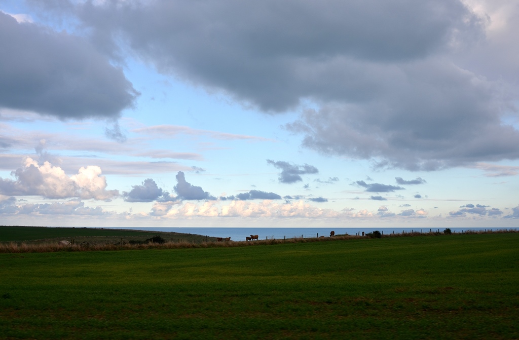 Leider kommt Daniela auf die glorreiche Idee, als Zwischenziel „Cap d’Antifer“ einzugeben. Die Aussicht dort ist zwar nicht übel. Der Weg dahin allerdings eine kleine Katastrophe. Noch schmalere Strassen kann man sich nicht vorstellen – und dies mit WoMo! Daniel sieht das natürlich alles wieder völlig anders und kurvt bergauf, bergab, kreuz und quer durch die schmalsten Strassen. Es ist richtig beruhigend, einen so erfahrenen Fahrer am Steuer zu wissen.