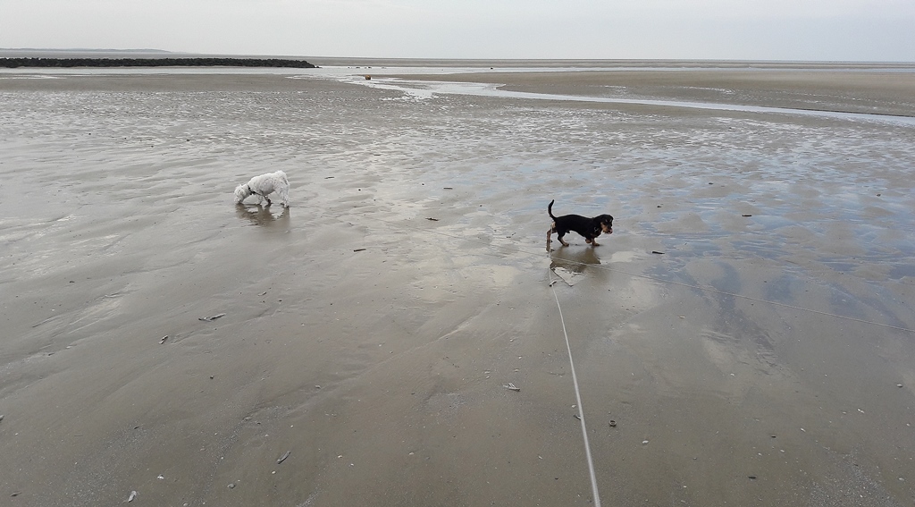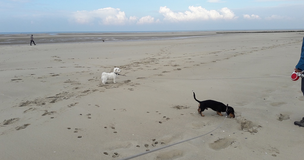 Den ersten halt am Meer machen wir in Berck-Plage. Schon von Weitem sehen wir den rot-weissen Leuchtturm, der uns magisch anlockt. Nach einem kurzen Spaziergang entlang der Dünen finden wir uns vor einem einmaligen Panorama wieder. Der Sandstrand, an dem gerade Ebbe ist, macht nicht nur Wilson und Olly tierisch Spass. Die Jungs rennen umher und buddeln Muscheln aus – wir auch.