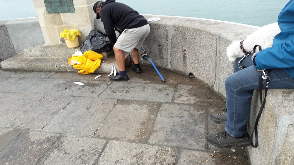 Nach gut 1.5 Stunden Fahrt kommen wir am grossen Industriehafen an und finden dort auch ein Parkplatz für Jelly. Wir machen uns zu Fuss auf den Weg, um den Hafen zu erkunden. Olly ist völlig fasziniert vom älteren Fischer, der gleich fünf Fische auf einmal mit seiner Angelrute aus dem Meer zieht. Aber warum zappeln die Dinger den noch?