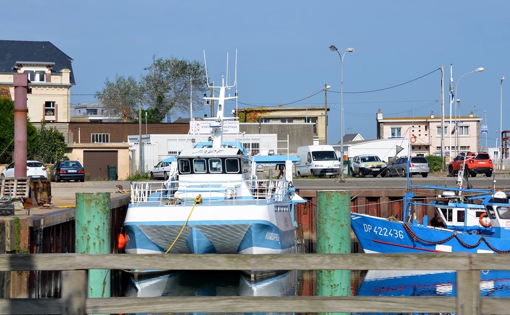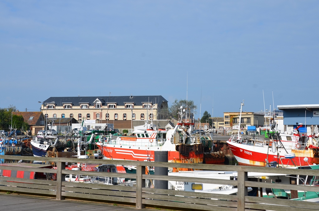 Wir fahren durch die Stadt Boulogne-sur-Mer und können bereits am frühen Morgen dem regen Treiben der Fischhändler im Hafen zuschauen. Wir kaufen unterwegs ein paar Dinge fürs Wochenende ein. Der Tarte au Sucre wird sich später noch als extrem lecker erweisen. Selbst mit unseren spärlichen Französischkenntnissen schlagen wir uns bestens durch.